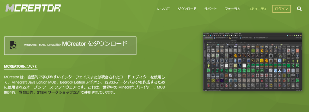 MCreaterは大人気ゲームのMinecraftマインクラフトのModモッドと呼ばれる改造データを作るソフトウェアです。